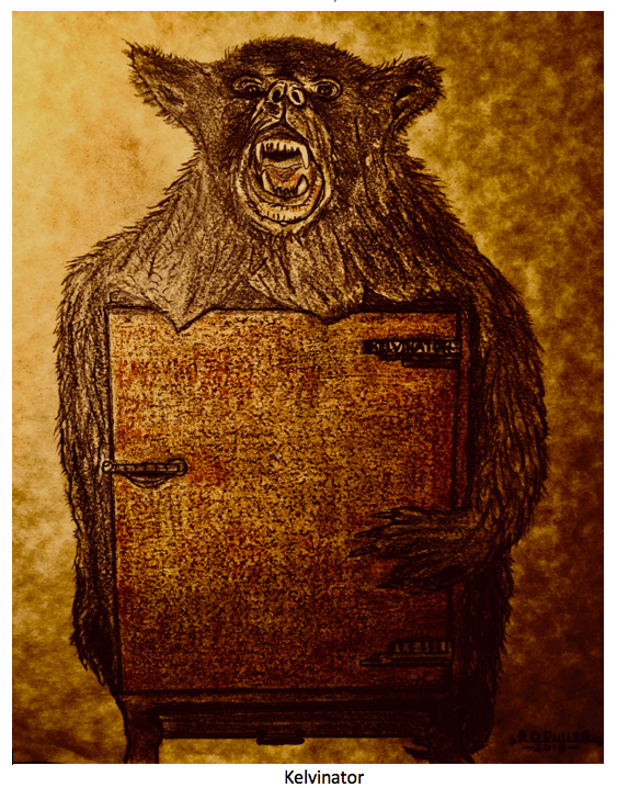 Anyhow, Daddy figured Spud got a hold’t of that Kelvinator from some busted luck family caught by the worst of hard times when folks with no timber access or spare folding money could not afford heat. Money was scarce as feathers on a dingus, even scarcer up on Huzzah Creek. Bartering and living off what the land allows is our lot in these hills, ravines, creeks, and rocky bottoms south of the Big Muddy.